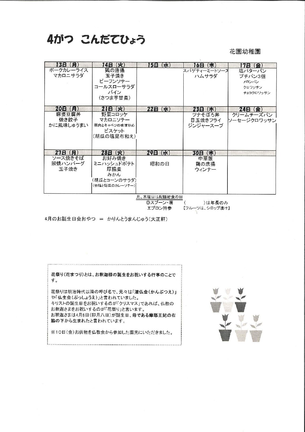 4月こんだて表